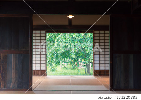 日本家屋の室内、反物を織る機織り器