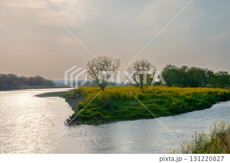 川のある風景、多摩川の夕景