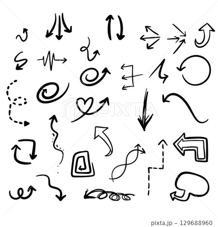Set of Arrow, doodle drawing on white background