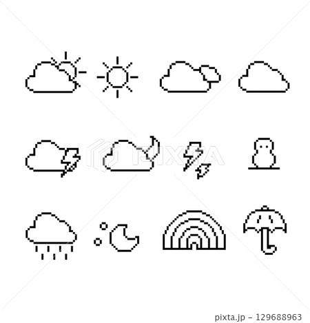 Set of weather icon vector. Pixel 8 bit style