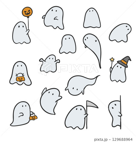 Set of Cute ghost doodle hand drawing, Vector for Halloween