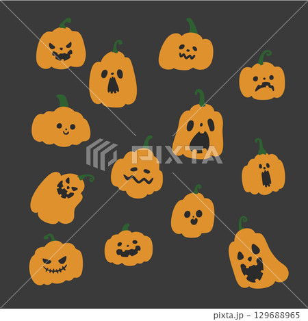 Set of Hand drawn pumpkin doodle icon, for Halloween