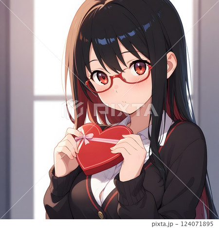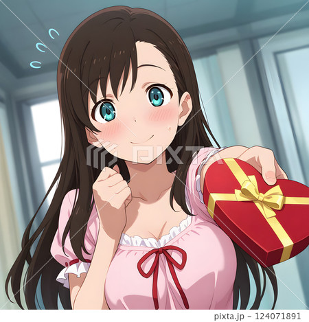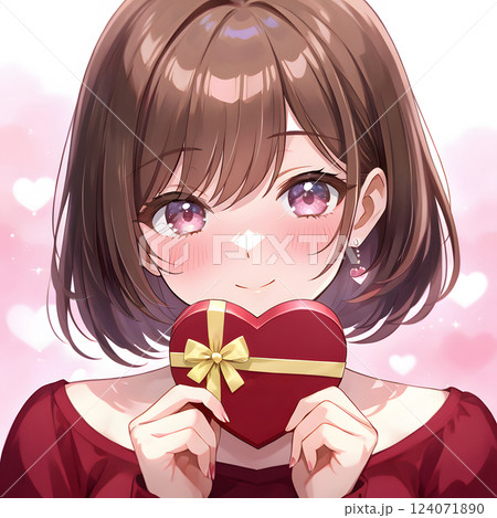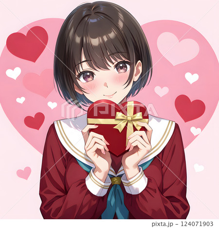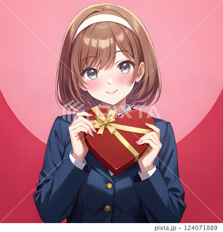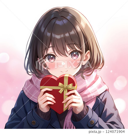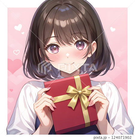 プレゼントを渡す少女 バレンタインのチョコレート クリスマス 贈り物 告白 ギフト
