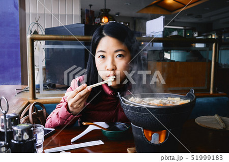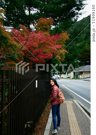 Asian girl is looking at Chuzenji Lake, Nikko, Jap