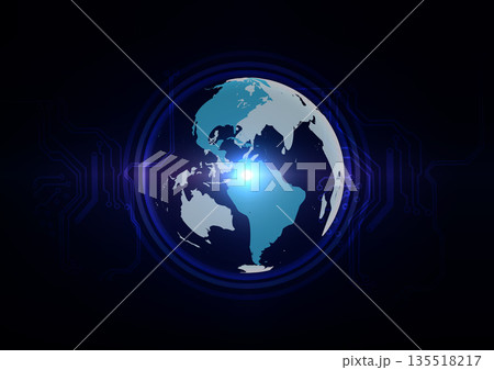 Abstract global technology background with digital earth globe and circuit network connection on dark blue vector. illustration vector desing