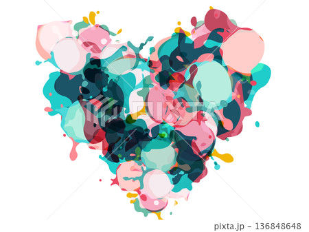 Abstract Heart Shape Made of Colorful Paint Splatter and Ink Splash. Artistic Vector Design on White Background.
