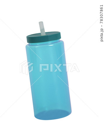 used blue plastic flask on white