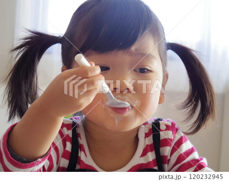 ヨーグルトを食べている女の子