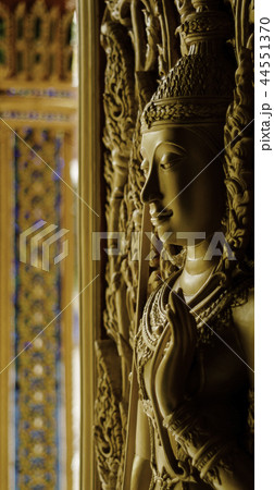 Statue at the temple wall in Thailand.