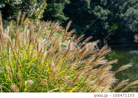 背景用秋のススキの群生