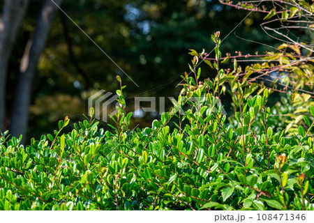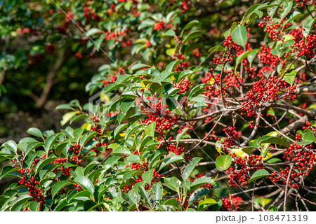 背景用秋の木々赤いナンテン