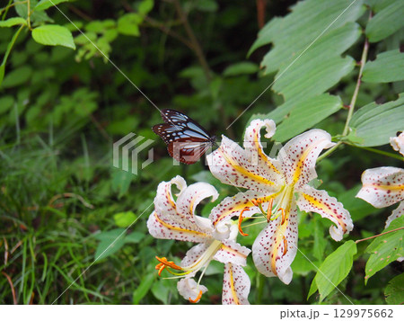 ヤマユリの蜜を吸うアサギマダラ