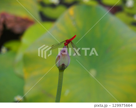 蓮の蕾にとまるショウジョウトンボ