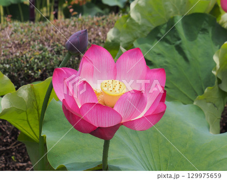 東京都府中市郷土の森公園 修景池の古代ハス