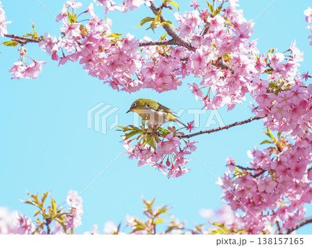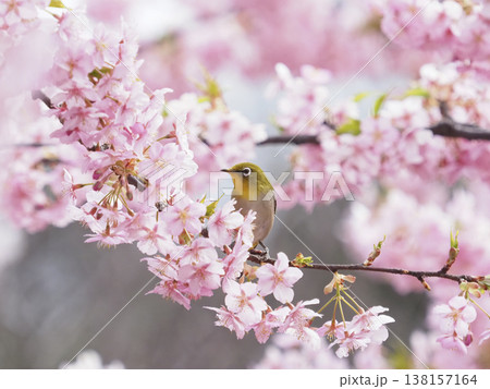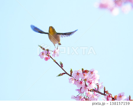 河津桜とメジロ