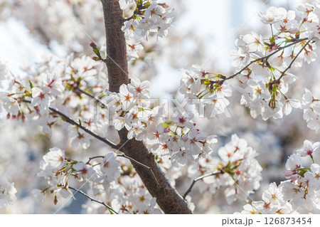 Close up sakura cherry blossom in full bloom. Spring atmosphere, Japan.