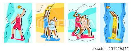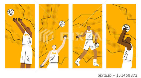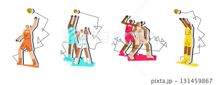 Rough sketch of basketball game, basketball player scores a goal, illustration