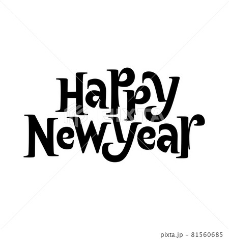 Happy New Year Vector Lettering. Black white hand-drawn greeting card. Vector illustration isolated on white