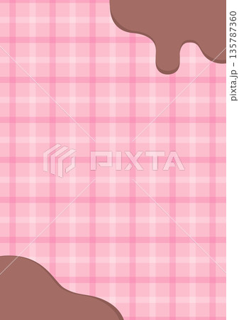 溶けたチョコレートとピンク色チェック柄の背景フレーム(バレンタインデー)
