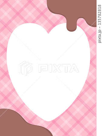 溶けたチョコレートとハートのフォトフレーム背景、ピンクのチェック柄A4縦