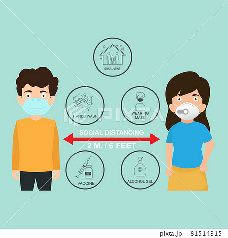 Human Social distancing how to protect yourself from covid-19. how to self isolation to limit spread of the coronavirus. healthcare and medical about infection prevention.Vector illustration.