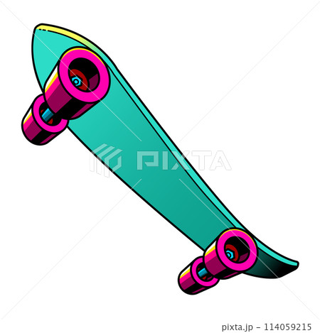 ピンクと緑 スケボー|スケートボード|クルーザー イラスト