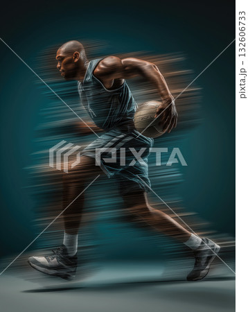 Stunning profile portrait of a woman with digital effects in a vibrant, modern setting