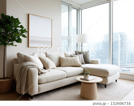 Cozy living room corner with modern chair, floor lamp, and indoor plant