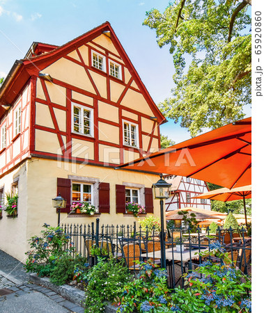 River Regnitz along historic half-timbered houses in the old town of Bamberg (Germany)