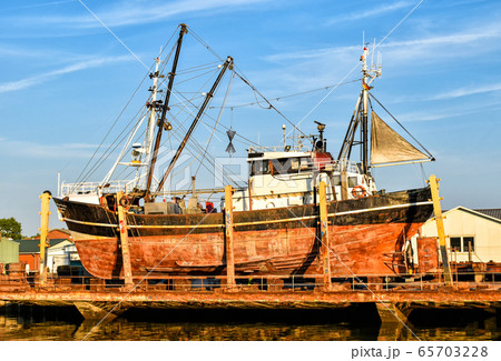 Fishing boat in a shipyard in Buesum on the North Sea in Germany