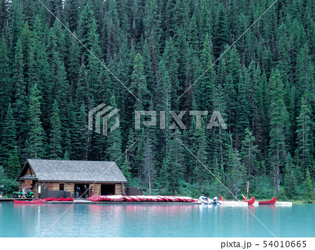 加拿大露易絲湖紅色小木屋