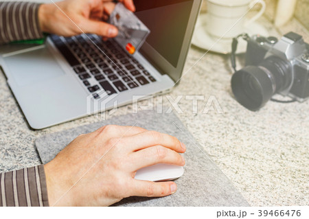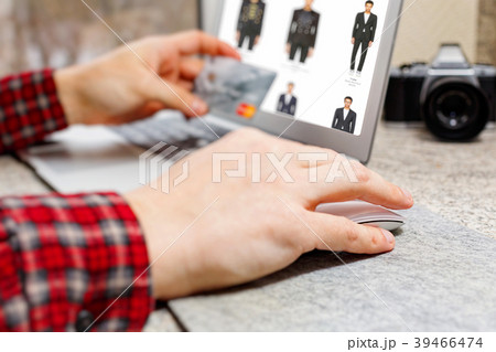 Male person makes online purchase with credit card