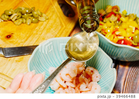 Adding white wine in shrimps for cooking