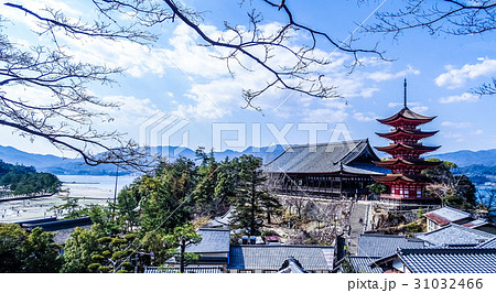 日本、広島、宮島、厳島神社、五重塔、茶屋から絶景