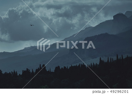 Dramatic mountain landscape. Blue hills of the Crimean mountains