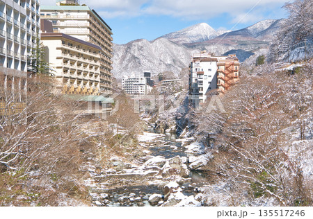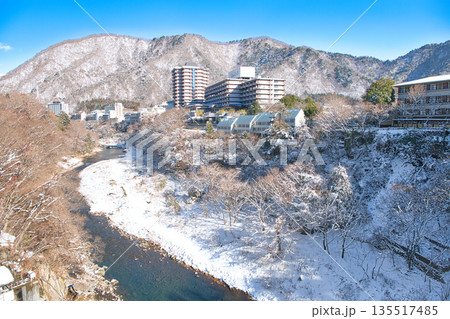 栃木県日光市 冬の雪積る鬼怒川温泉