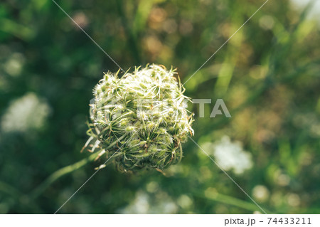 Close up white wild carrot flowers of a wild greater burdock in summer in the meadow. Nature background pattern texture for design.