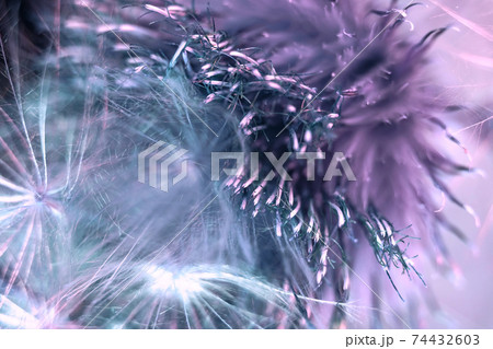 Close up Beautiful flower burdock in colorful neon light. Minimalism retro style concept. Background pattern for design. Macro photography view.