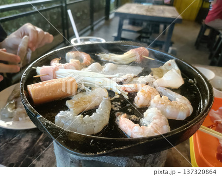 Barbecue grill shrimp pork mushroom street food dinner smoke dinner barbecue grill shrimp pork mushroom street food dinner
