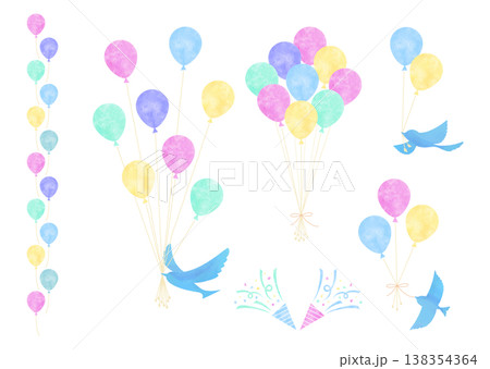 パステルカラーの風船と青い鳥