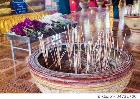 Smoke is floating,Incense sticks are in pots.