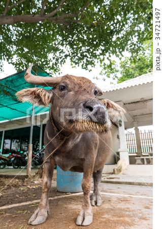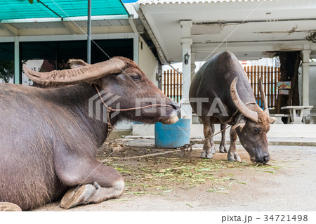 The buffalo was tied to a rope.