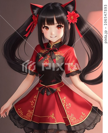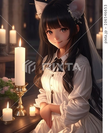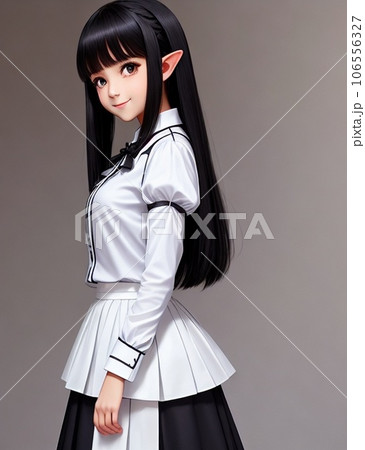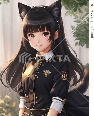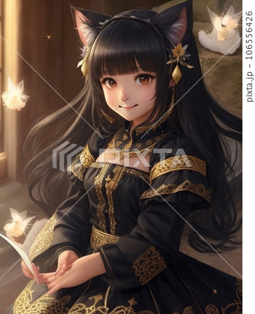 オオカミ耳の黒服の黒髪ロングヘアー少女