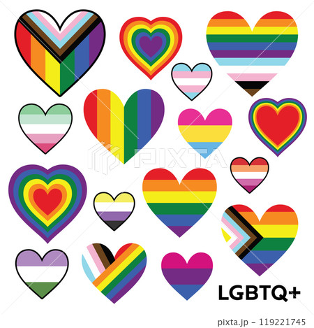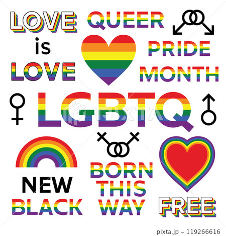 Set of LGBTQ pride flag rainbow colours symbols and icons