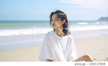 透明な傘をさす笑顔の若い女性のナチュラルポートレート