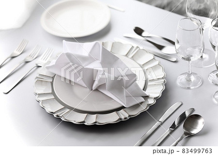 洋食コース料理のテーブルセッティング