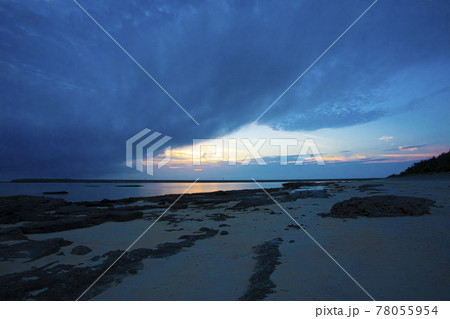 【沖縄素材】大きい雲が移動して夕雲が現れた瞬間をビーチで撮影