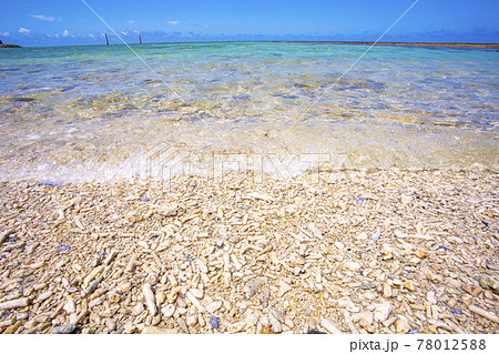 【沖縄素材】沖縄の赤土と珊瑚で出来たビーチと青空