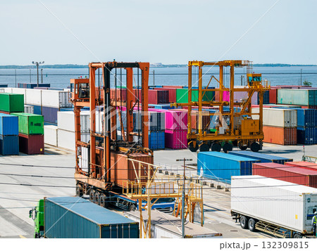 コンテナターミナルで稼働するストラドルキャリア