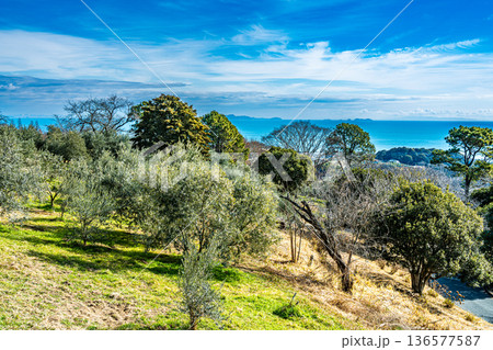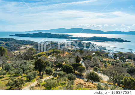冬のオリーブ園と瀬戸内海の風景2 岡山県瀬戸内市